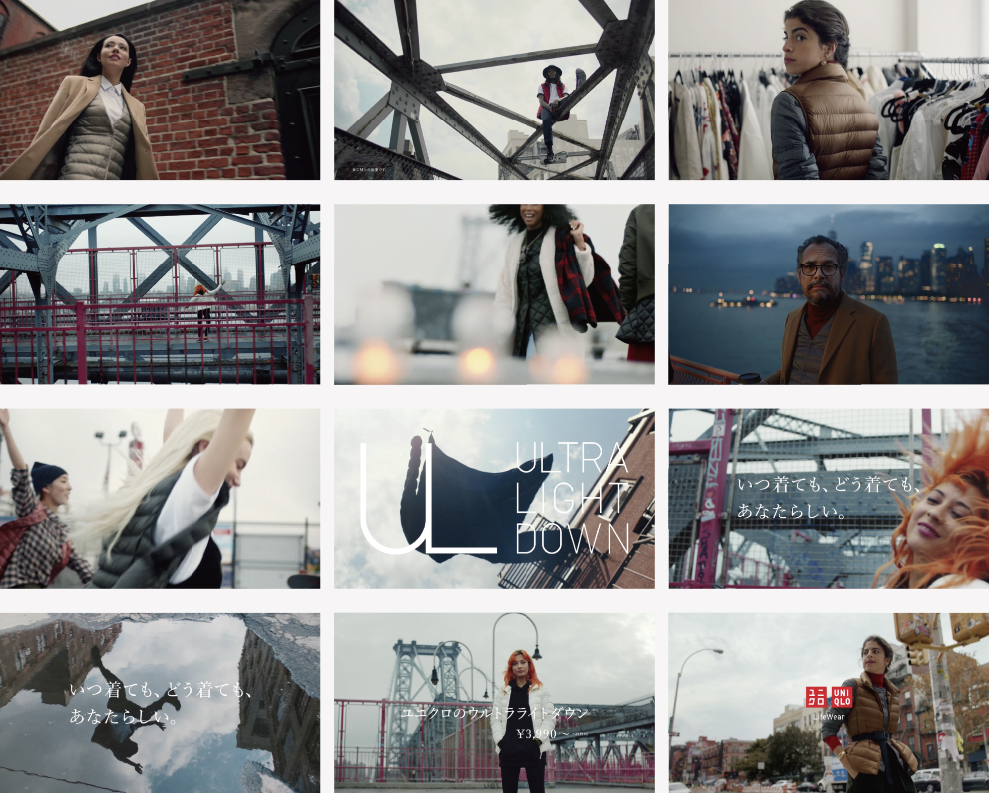 TVCM Client : UNIQLO CO., LTD. Creative Director : Yoichi Komatsu (dentsu) Art Director : Taichi Tamaki (dentsu) Art Director : Takahisa Nakajima Film Director : Hisashi Eto Planner : Hiroshi Akinaga (dentsu) Copywriter : Yumiko Ota (dentsu) Copywriter : Hitomi Sato (dentsu) Cameraman : Guillermo Garza Producer : Iwao Noritomi (TYO monster) Music : Tommy Zee
