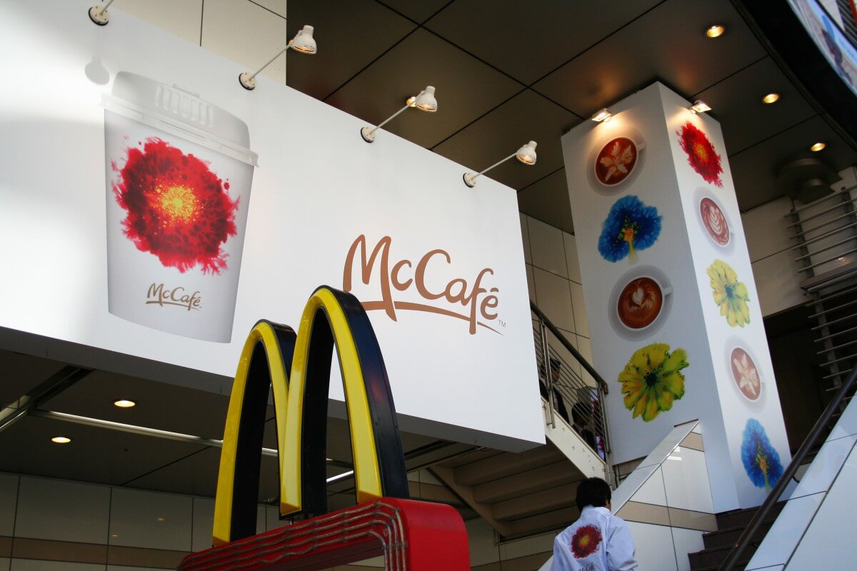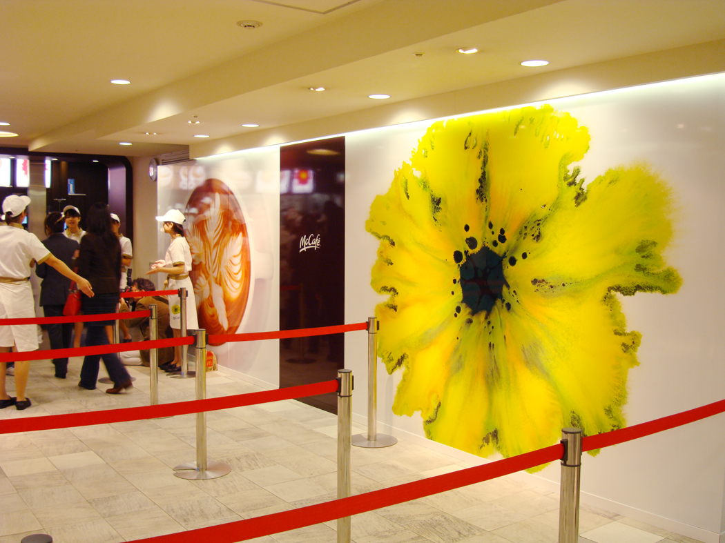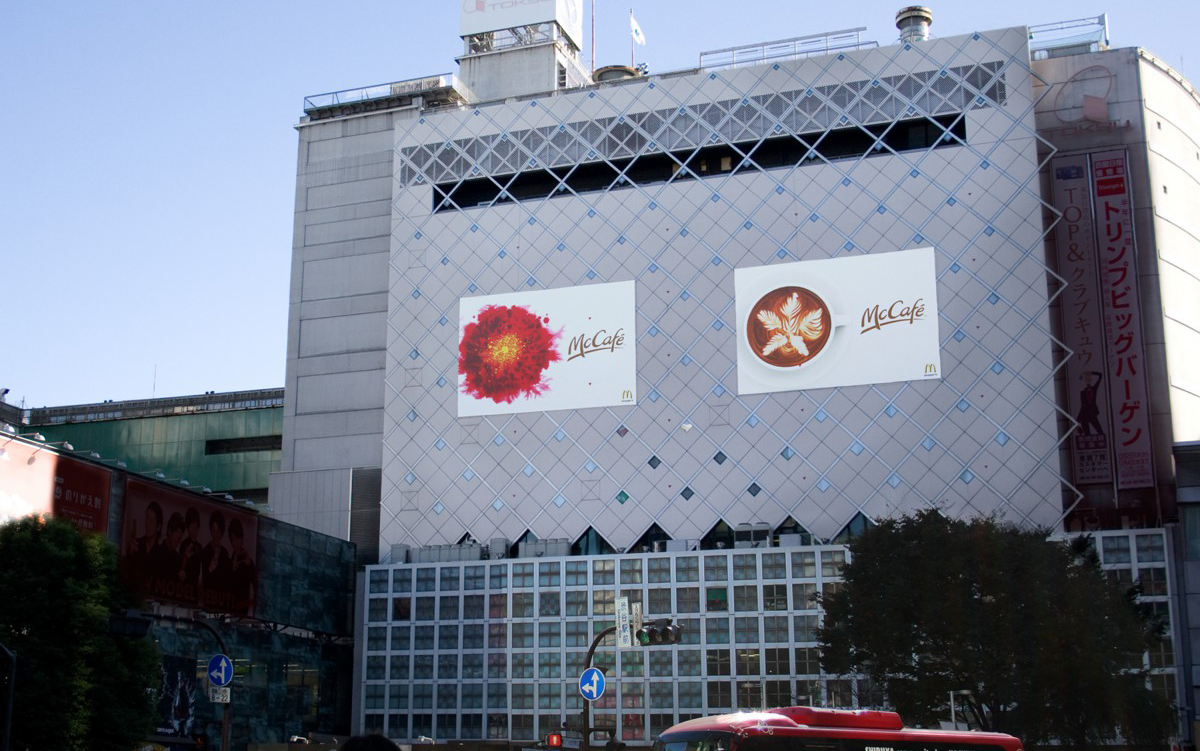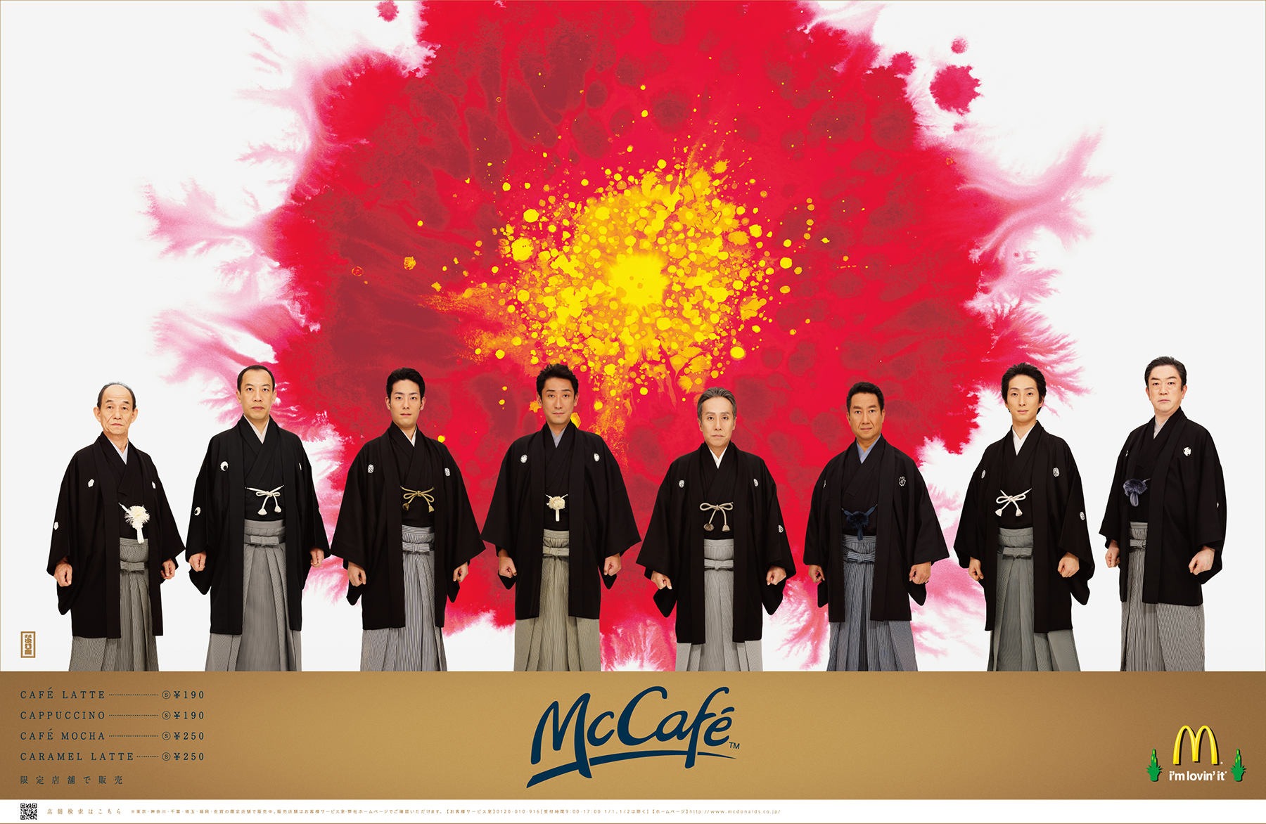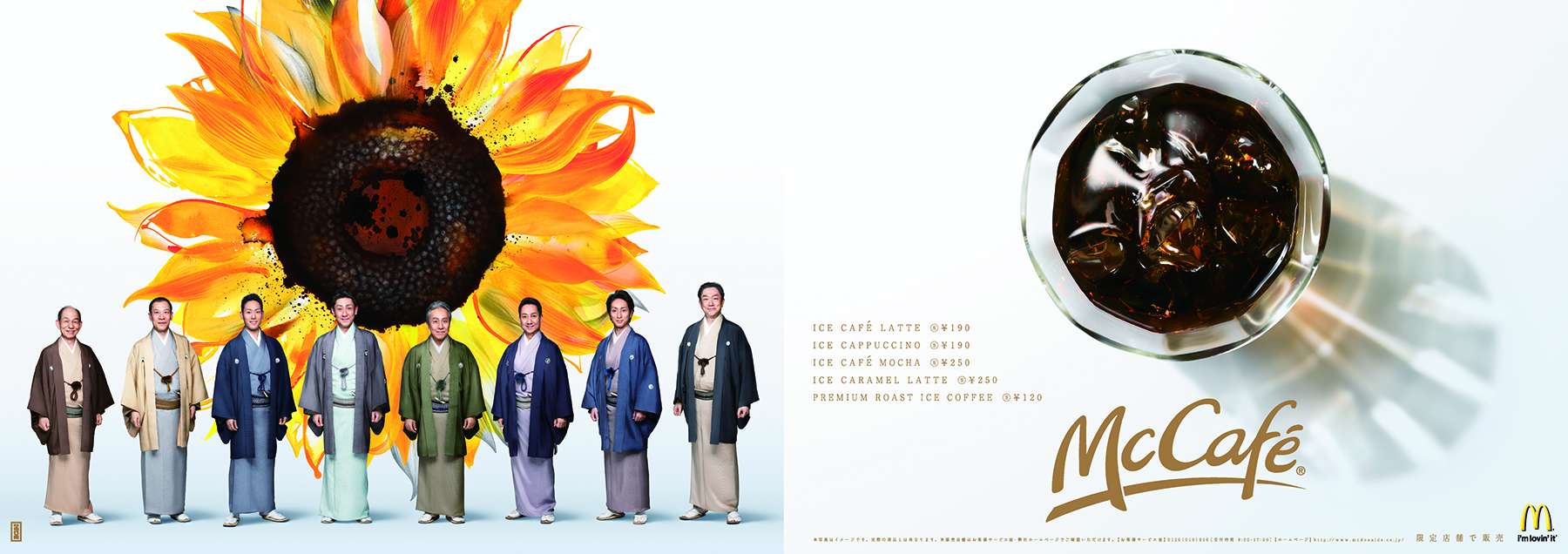 VI / POSTER / NEWSPAPER AD Client : McDonald's Japan Executive Creative Director : Ichiro Kamata Creative Director : Yuki Abe Art Director : Takahisa Nakajima Designer : dish Photographer : Kishin Shinoyama Photographer : Shinichi Masumoto Illustrator : Ohgushi Illustrator : Kahori Maki Latte art : Hiroshi Sawada